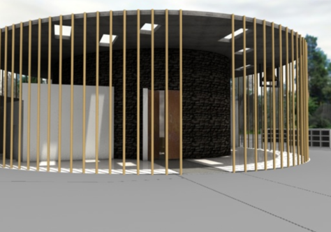 Chappel of peace is located at the midpoint of the existant cemetery, sourrounded by trees as
