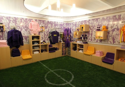 Other part of the store is designed as a football playground - stadium.